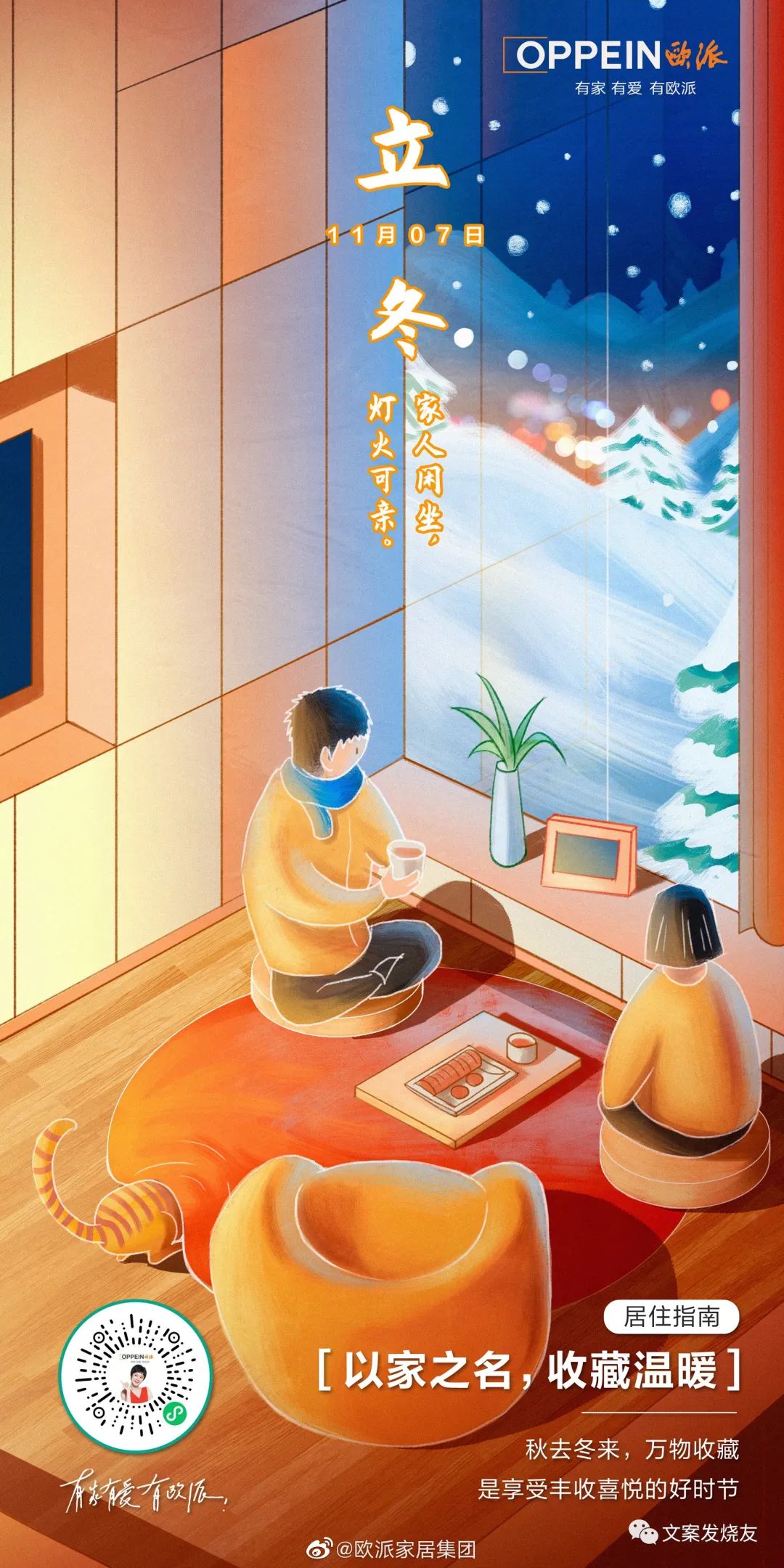 日渐寒,万家灯火暖。立冬,冬之伊始,纵使寒风瑟瑟,家中温暖依旧。