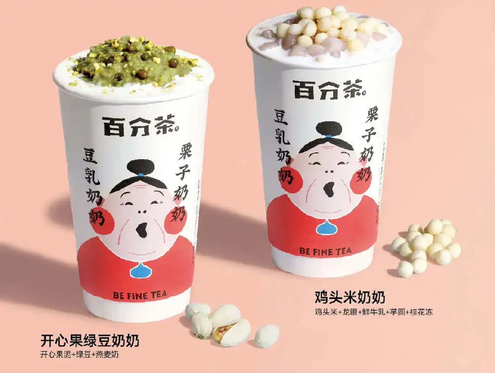 在去年,百分茶推出奶奶系列,今年秋冬又升级回归该系列。类似于往年热梗“你妈喊你回家吃饭啦”,该系列同样紧扣温暖主题,以“奶奶喊你喝杯热的”为slogan讲述IP故事。不局限于品牌营销,百分茶也在元素上进一步“温暖”消费者——栗子奶奶、豆乳奶奶、开心果奶奶以及鸡米头奶奶,各类秋冬盛行的节气坚果都与奶茶创意性融合。与偏重于社交属性的热红酒不同,百分茶在满足消费者“喝热饮”的需求下,借“奶奶”之手打出温情牌,创造记忆点的同时也将情义暖进人心。