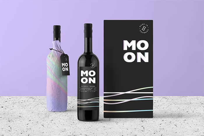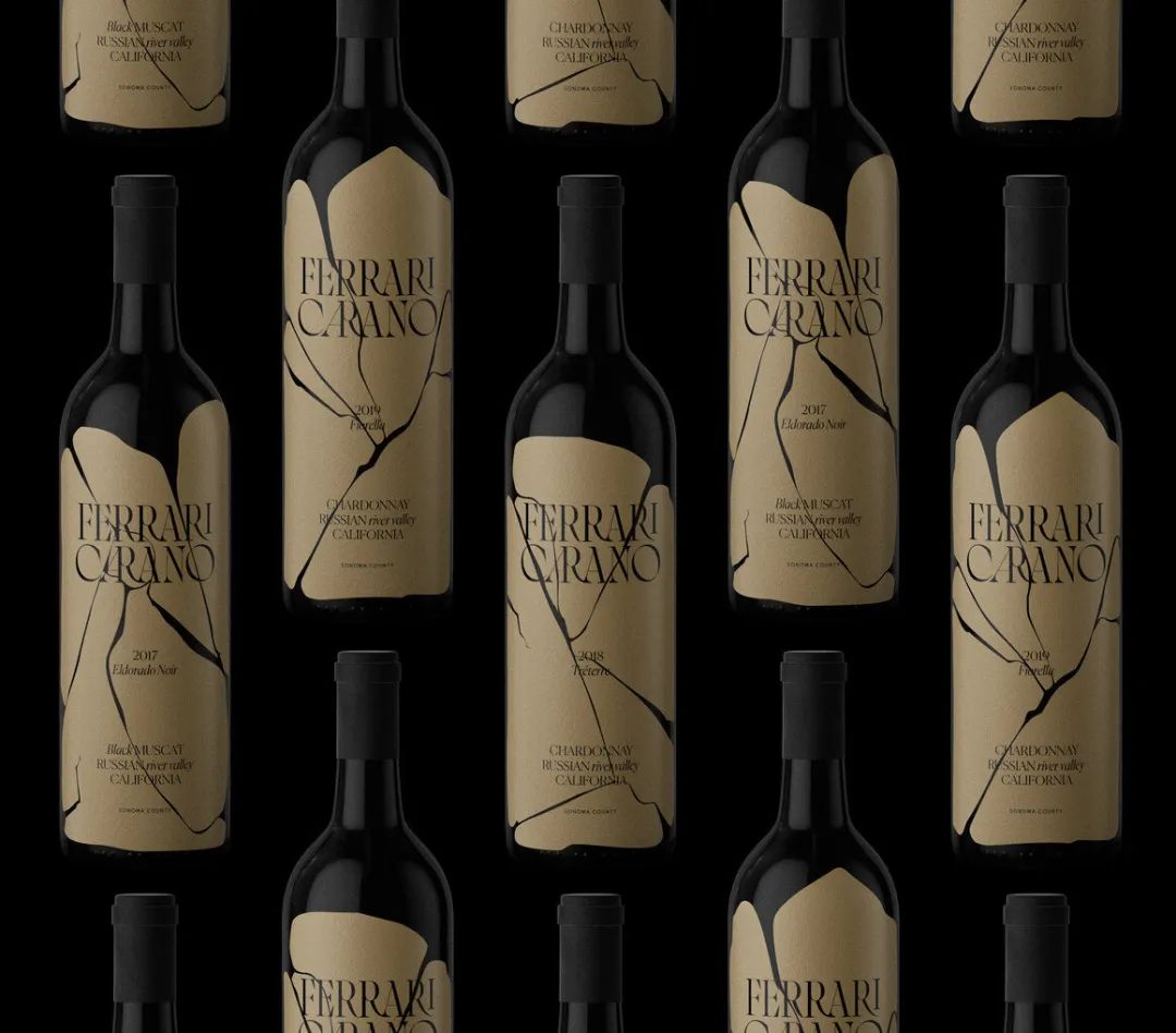 一般在酒瓶包装或者生活用品包装上用这个方式比较多,看上去比较简约、高冷的设计。