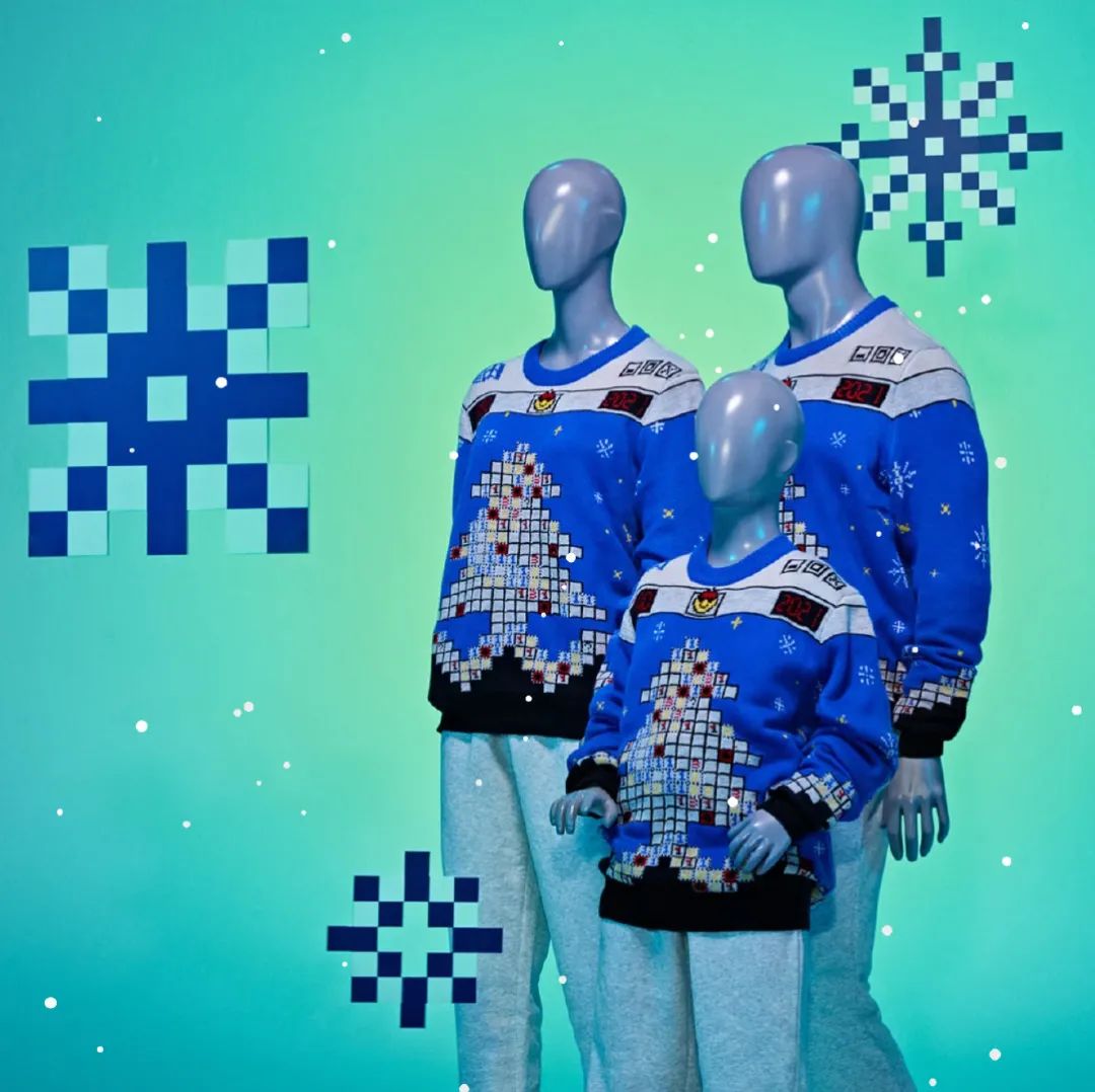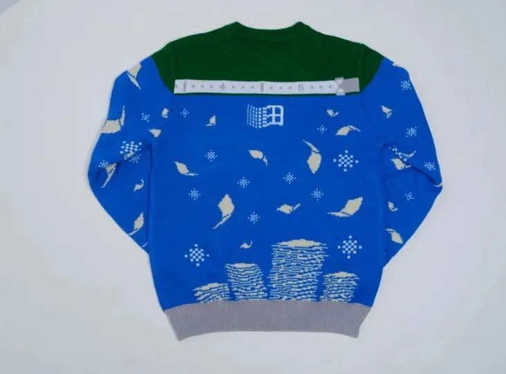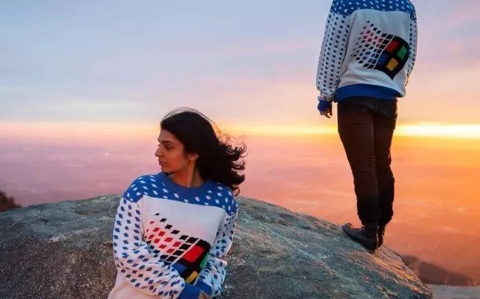 而在同年的12月圣诞节前夕又推出了3款毛衣,其中包括一款Windows 10方格视窗设计的款式以及经典的Windows 95蓝天白云桌面背景款式,同样没有开始售卖。