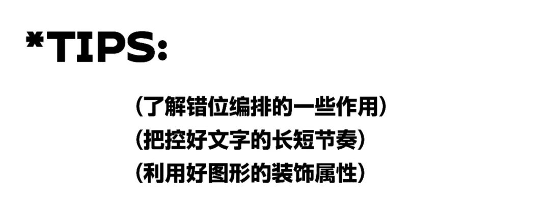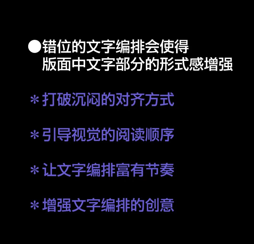 从另一个角度来表达文字编排的对齐方式,以体现文字编排的可能性与创意。而错位编排某种意义上打破了一般的断行方式,与对齐方式。