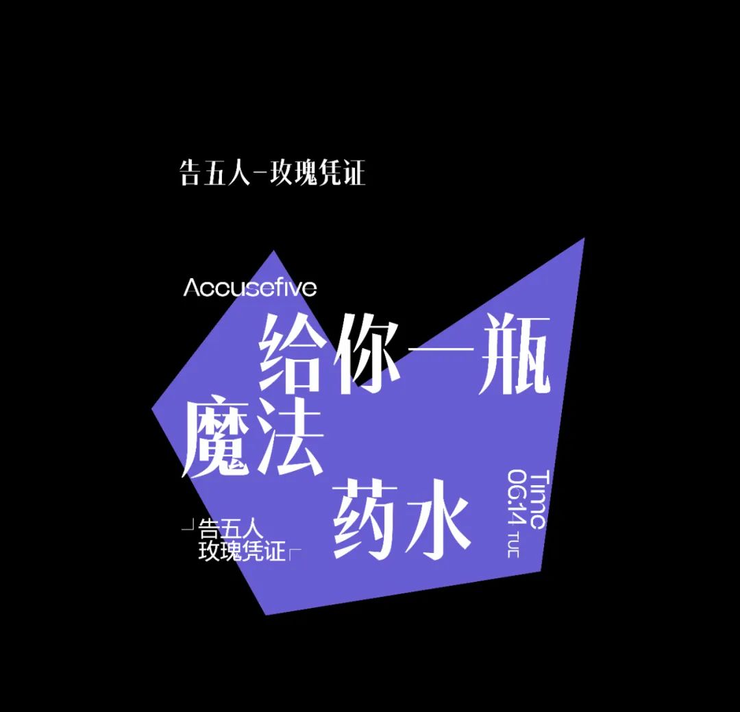 它也可以这样排列文字两两断行嵌入矩形,在中间留白出编排英文以及描边的圆圈装饰。