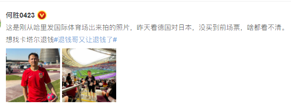在德国VS日本队输掉之后,退钱哥因为一篇微博登上热搜
