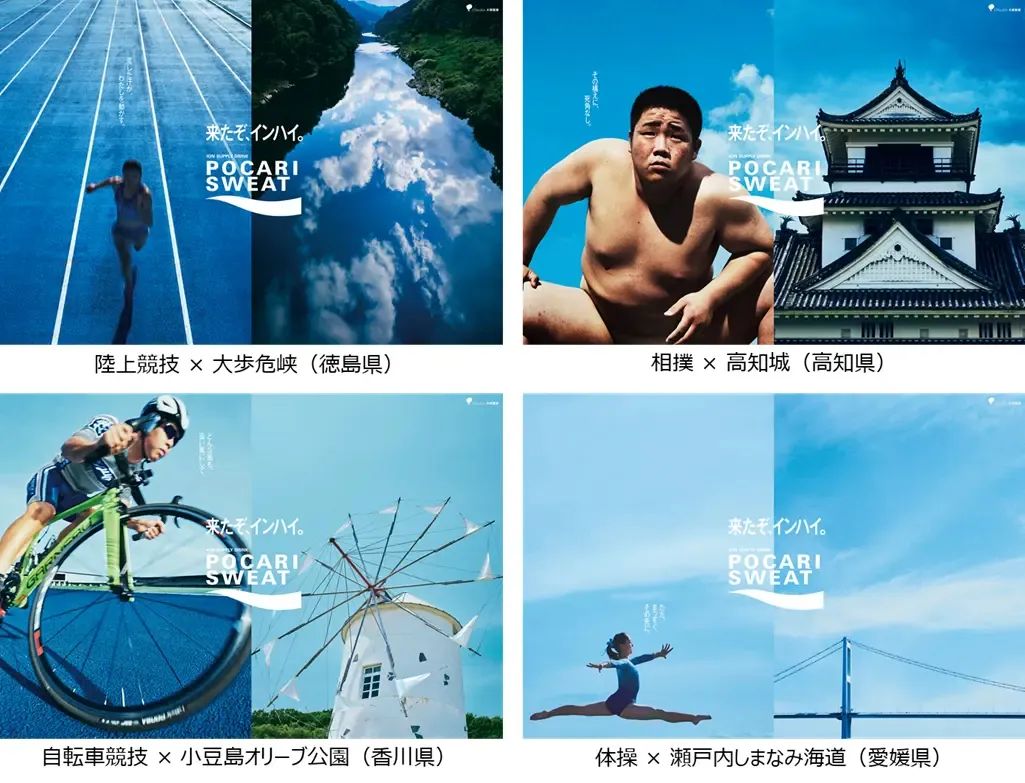 日本宝矿力水特为应援这些高中生,以 「30 SPORTS x 30 SPOTS」 为概念,制作了一部微电影,以及拍摄30 张海报,将30 个比赛项目与30 个比赛场所的景点无缝拼接,一半动、一半静,将高中生们对运动的赤忱与四国风景完美融合。
