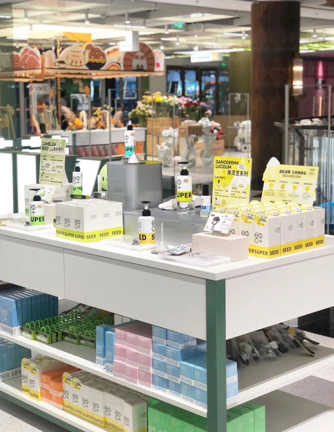 比如,文创品牌平方studio在葱葱商店有了长期线下店,无论是经典还是新款的各种本子、收纳、包包等,都能在这里找到;超级种子为此次入驻,针对爆款雪松洗发水打造了联名限定包装,并将种子IP与葱葱商店所蕴含的文化内涵相结合,推出了贴纸、帆布袋等多款专属限定周边……