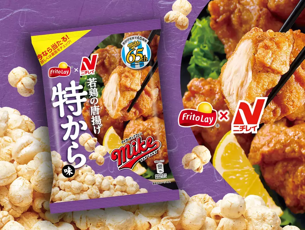 这一次,日本爆米花市场销量第一的mike和日本冷冻炸鸡市场销量第一的日冷「特から®」进行了联名,以秘制酱油调味汁和辛香的炸鸡外皮为原型开发了新品。