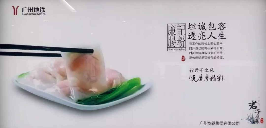 再仔细一看才发现,这根本不是宣传美食的,是广州地铁借着美食的魅力,以来做 廉政公益宣传 的。