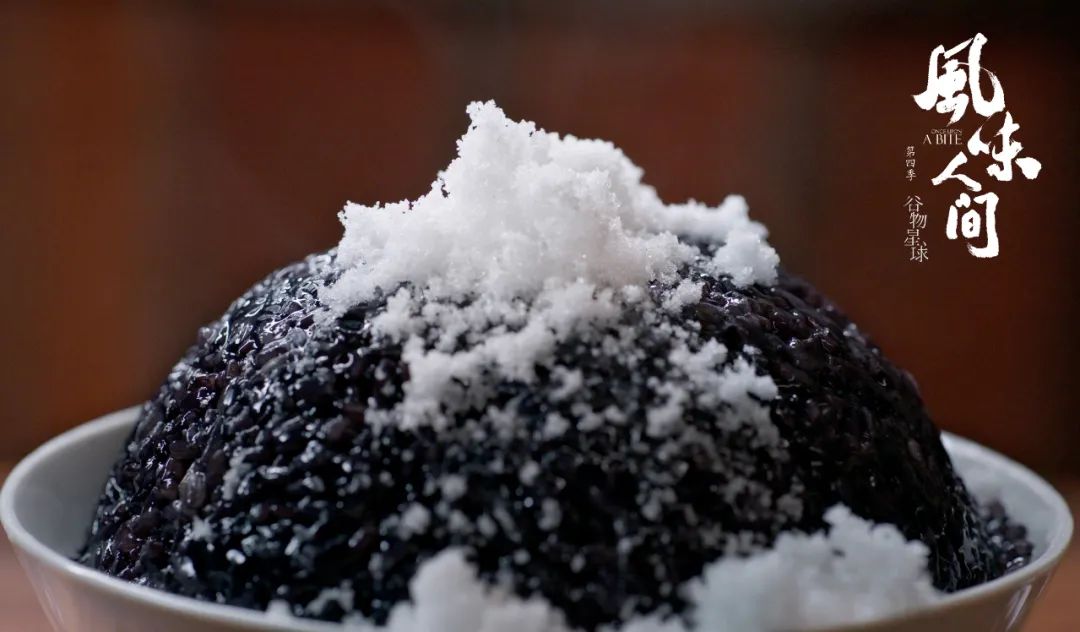 砂糖铺撒在黑青色的米饭上,米饭蒸腾的热气让糖粒化成液体,沁入饭粒间隙。这是《风味人间4·谷物星球》(以下简称《风味4》)记录的“乌米饭”制作流程的最后一步,在花青素的作用下,糯米变成黑色,再加上一层甜蜜,被端上人们的节日餐桌。