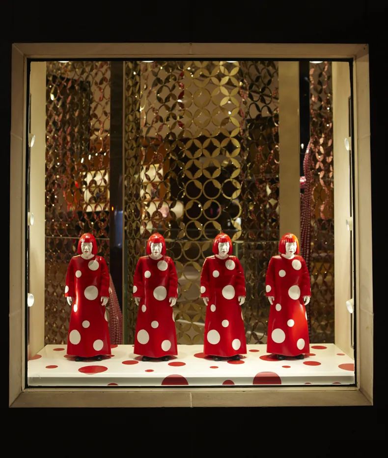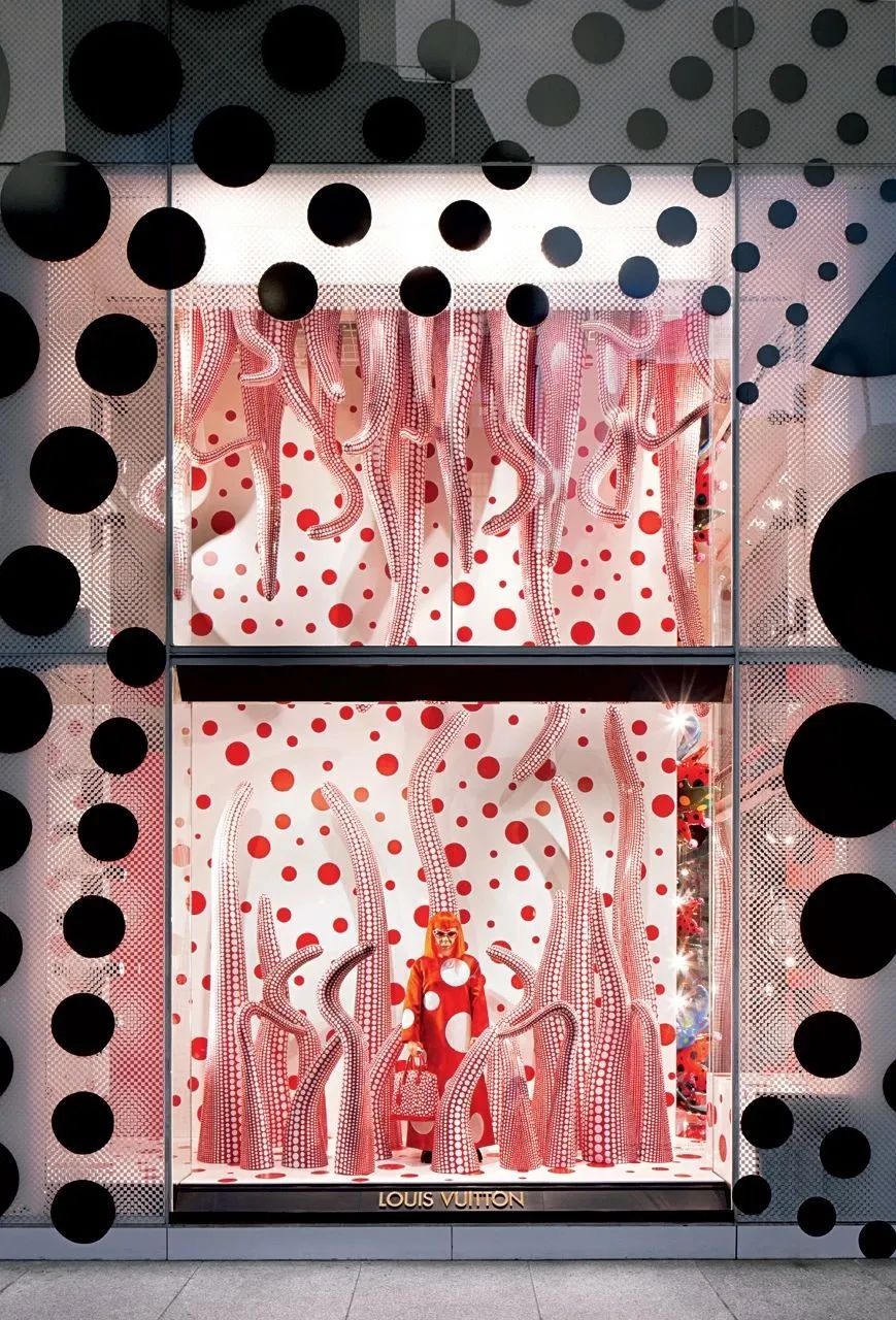 除此之外,还有LV与草间弥生合作的橱窗设计可以说是LV最经典的橱窗设计之一。