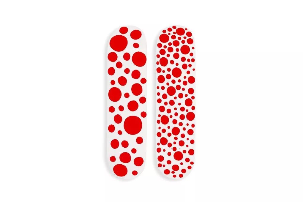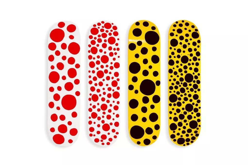 还有, 草间弥生与纽约的 现代艺术博物合作推出的系列滑板 。