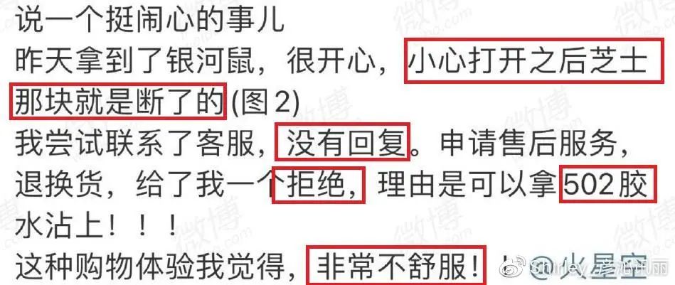还有华晨宇的潮牌虽然售价高达数百到数千元,但产品质量同样让人一言难尽。曾有不少网友吐槽,掉漆、有划痕、产品身上的配件掉落的情况数不胜数,而客服却总是找不到人,基本处于杳无音讯的状态。