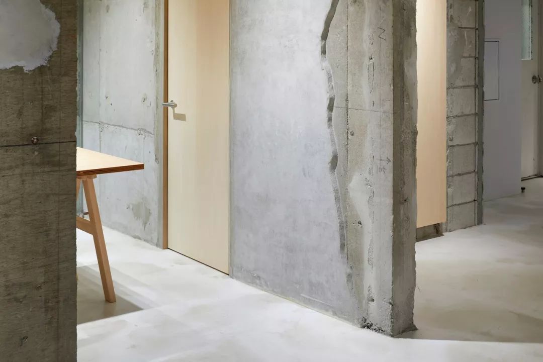 保留了建筑水泥原貌,更多的选择了木头、不锈钢、布、玻璃等材质,代替了大理石等材质。