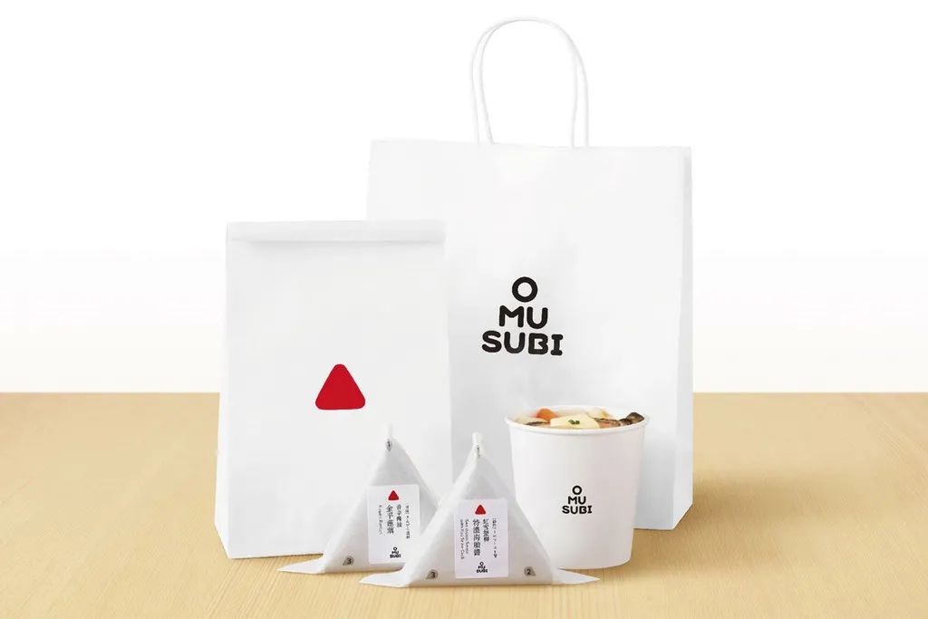 这次与佐藤可士合作的甲方是一家饭团品牌,名叫“OMUSUBI”。可以看到LOGO的整体是一个红色的三角形,除此之外没了,虽然简单,但却很容易让人联想到设计灵感是来源于饭团的造型。