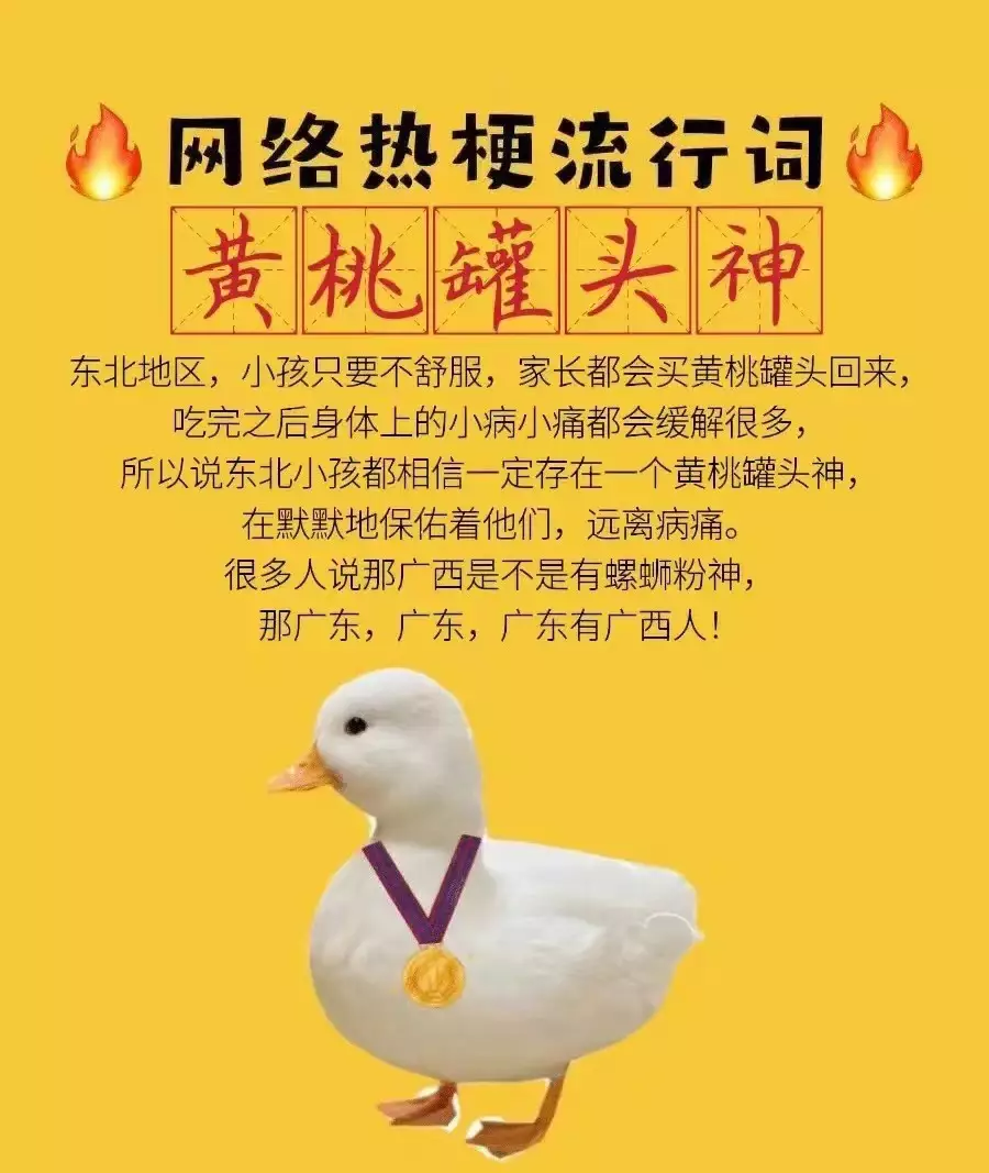 全网都对黄桃罐头产生了强烈的喜好,在相关品牌的直播间内,也有“听说对退烧有奇效”之类的留言不断飘屏。就连官方媒体,都将黄桃罐头肯定为一种神秘的“东方玄学”。