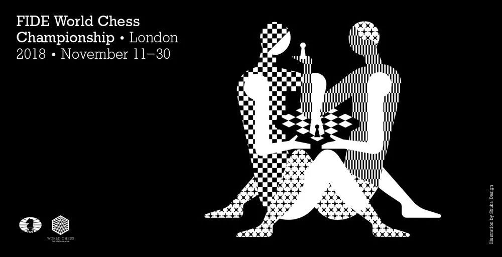 2018国际象棋冠军赛的LOGO,一对男女,四目相对、肢体交缠地在——下象棋!