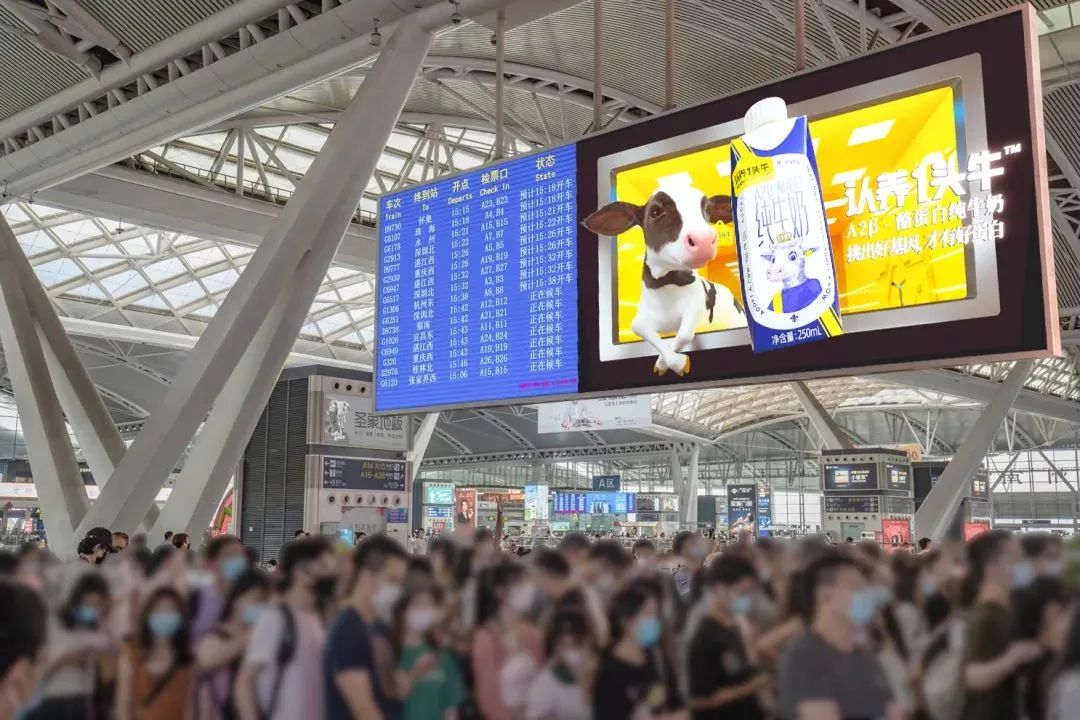 此前,认养一头牛在杭州高铁站投放的一则裸眼3D广告引起广泛关注。互动性更强的裸眼3D动态广告,在高铁候车厅更能轻易夺取过往旅客的视线和关注。