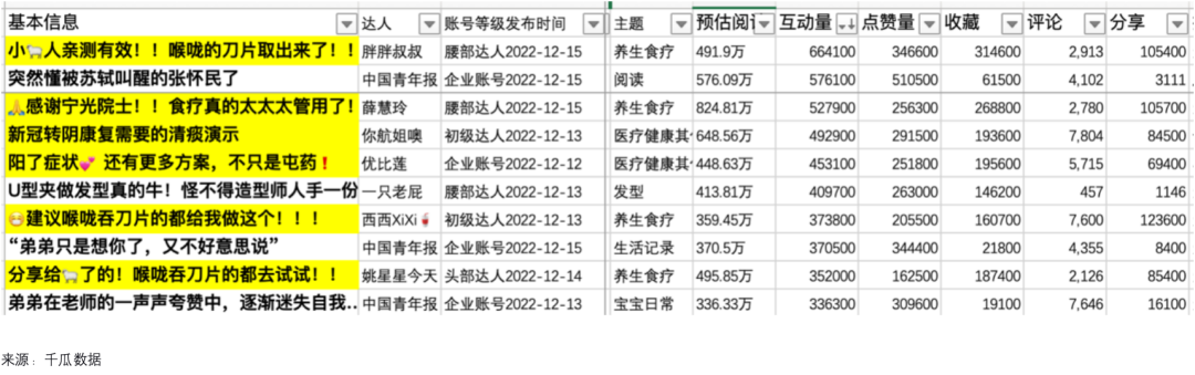 在看近一周小红书爆文榜单时,发现top10里有5条都是关于养生食疗抗阳的内容(如下图所示),之前分析过大量的美妆,零食,时尚等类目的top榜单的内容特征,难得医疗养生类目的内容近期能有这么大的曝光量,顺便做个爆文内容集中分析,看看近期怎么发力,多做一些爆款内容。
