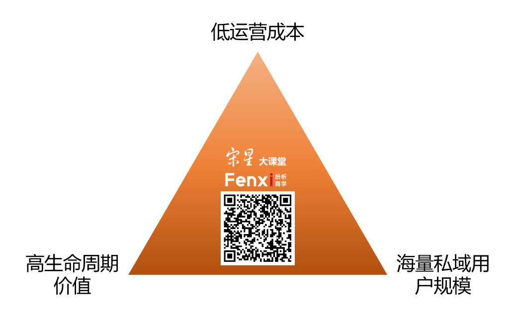 私域的不可能三角是:低运营成本、高生命周期价值、海量私域用户规模。