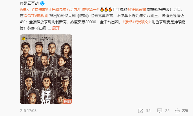 然而目前,《狂飙》官博尚未对此事进行回应。