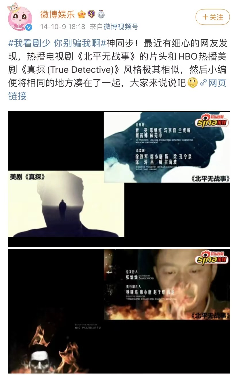 大剧大片尚是如此,各种各样的小剧,抄袭现象就更别提多离谱了。