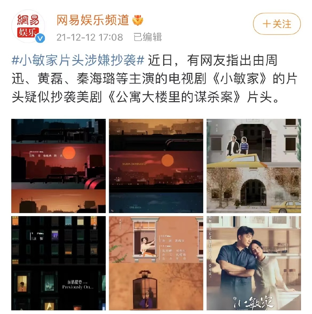 去年大火的《小敏家》,片头就被指出是抄袭美剧《公寓大楼里的谋杀案》。