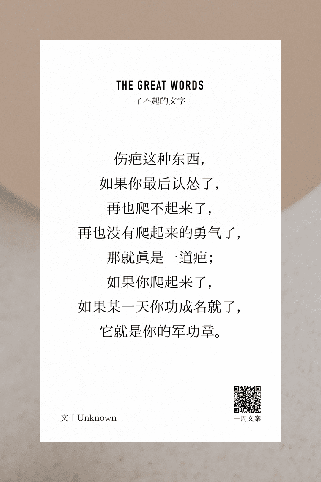 每一则收录于本栏目的文字,我们都尽力找到原文出处,标注作者大名。但由于部分文字年代久远,或被多次错误引用,已无法溯源,便标注为“Unknown”,如果其中有你或你认识的作者的作品,请告知我们,我们将及时在评论区置顶声明。