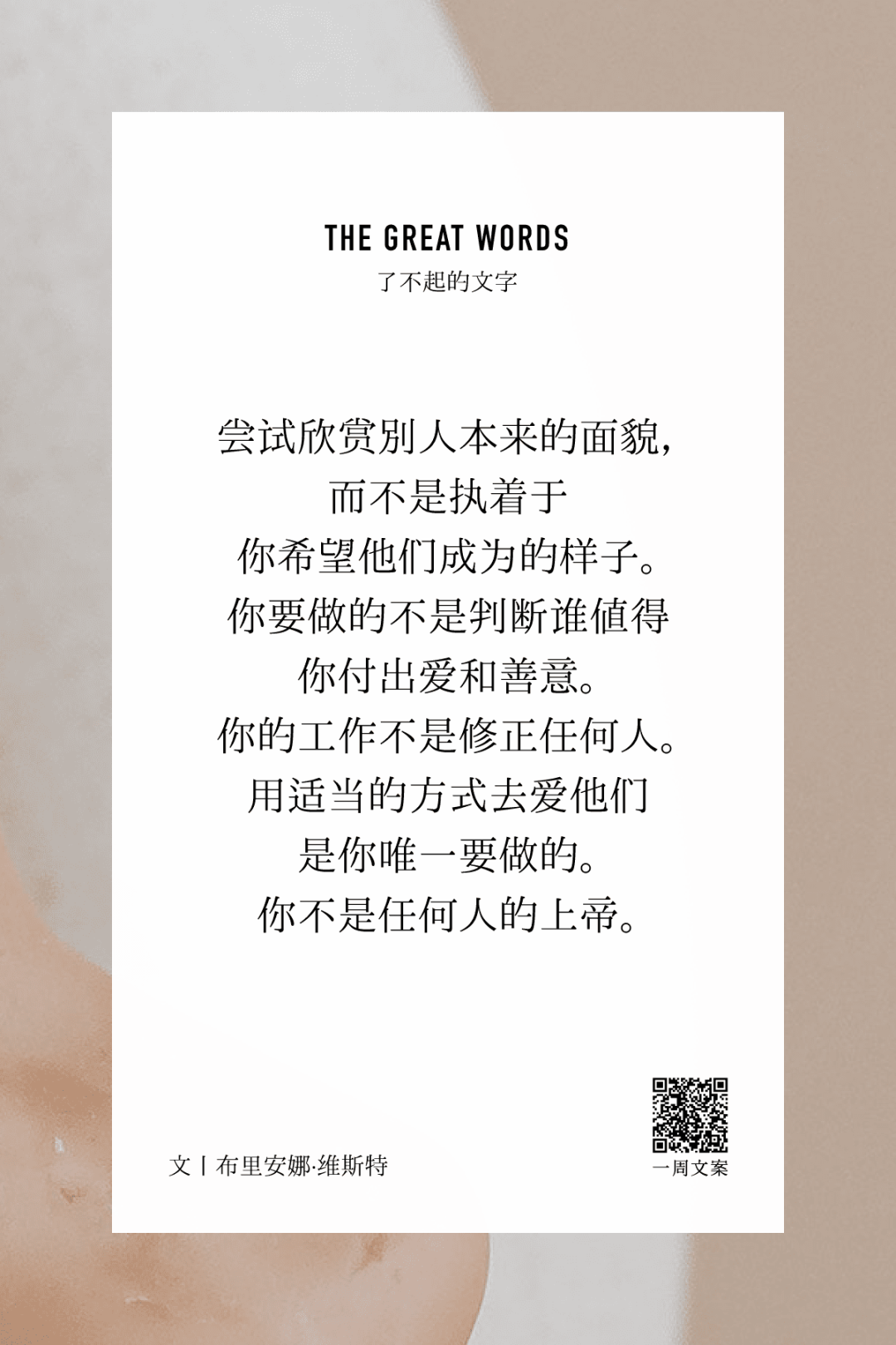 「了不起的文字」栏目是一个没有主题的主题集——来自巨著名篇、圣贤金句、传世演说、经典影剧,也来自民间谚语、市井智慧、网友评论、冷门读物……一切有深刻人性洞察的独到见地,帮助启发更多文案创作灵感。