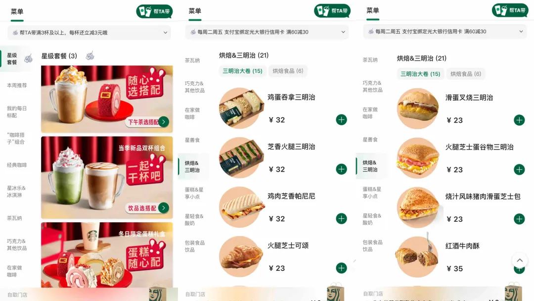 西餐显然是跨度最小的一个方向,品牌基本上是只需要进一步去增加烘焙类SKU就能够覆盖到午餐,比如星巴克和瑞幸自去年下半年加大烘焙端供给,以可颂、贝果、卷、汉堡、三明治满足午餐需求。事实上不少海外咖啡品牌在其原本的市场上也一直都有布局,经验可以完全复制,Tims中国CEO卢永臣就表示咖啡+暖食的组合是延续了Tim Hortons在加拿大的传统。
