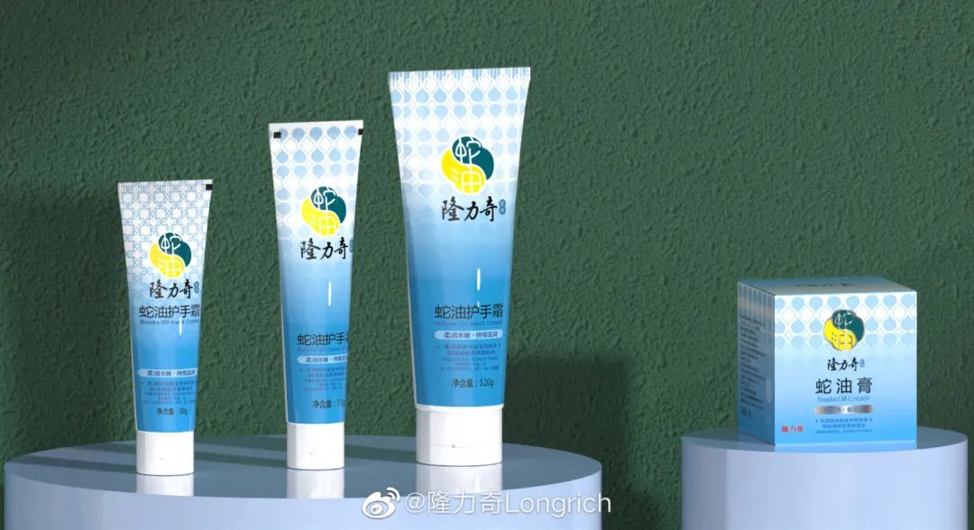 于是,隆力奇顺势推出蛇油膏、护手霜等产品,收到不错的市场反响后,又趁热衍生出更多的蛇制化妆品。
