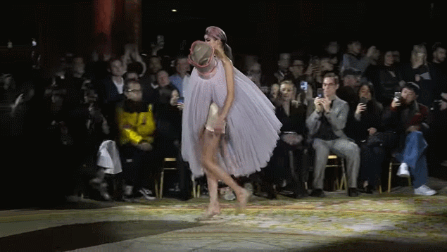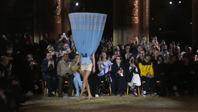 这种以异想天开的叙事和超现实玩味的设计为特色,重新解构潮流,打造俏皮、创新的另类秀场,被称之为「颠倒时尚」。创办这场秀的Viktor 和 Rolf表示在保持服装理想化形状的同时,希望通过这样的秀以一种超现实的方式对抗、疏远并从身体中解放出来。