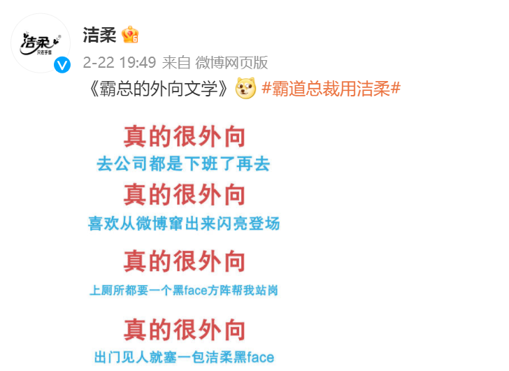 可以说洁柔是把 霸总人设 、 social营销 都玩得炉火纯青。