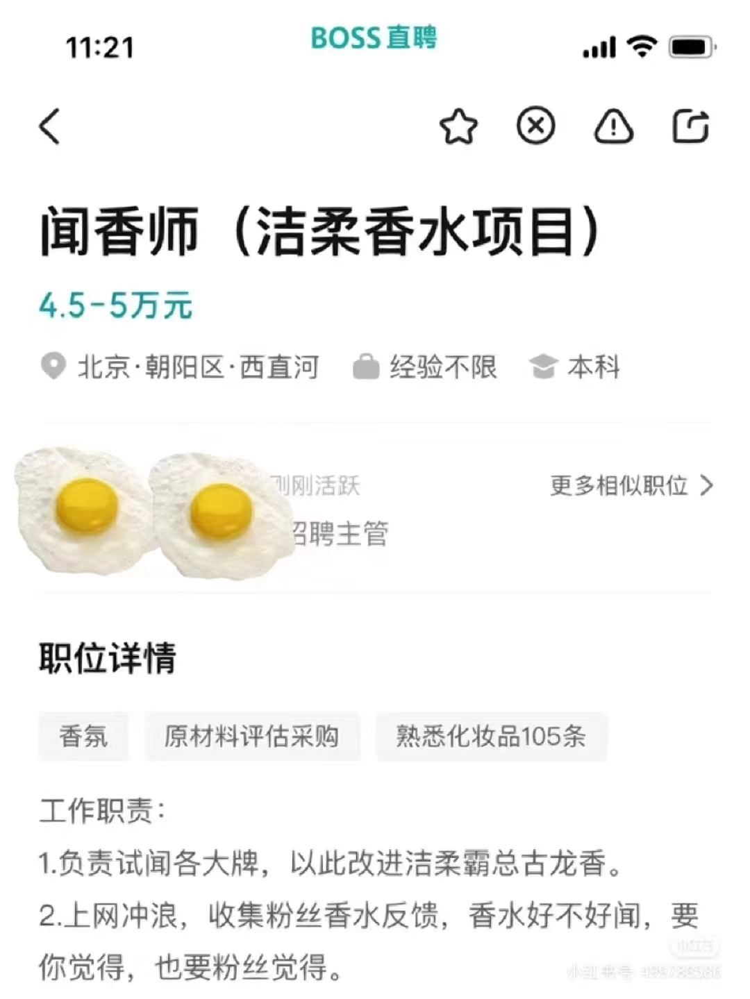 再一查,原来是洁柔在招 闻香师 ,薪资和名字一样高贵—— 4.5-5万元 。