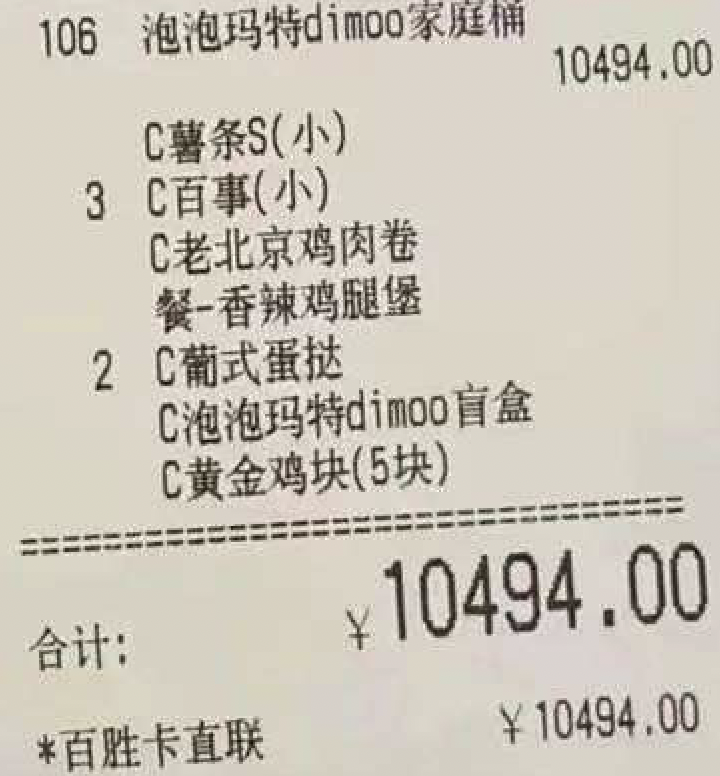 肯德基曾经与泡泡玛特合作推出DIMOO联名款盲盒套餐,消费者每购买一份99元的DIMOO套餐,就可得到一个盲盒。该套餐推出后,迅速被消费者的“疯抢”,根据肯德基的工作人员透露,为了集齐一套盲盒,许多消费者都是一次性购买六份套餐。甚至有消费者晒出了购买106份套餐的订单,总花费超过10000元。