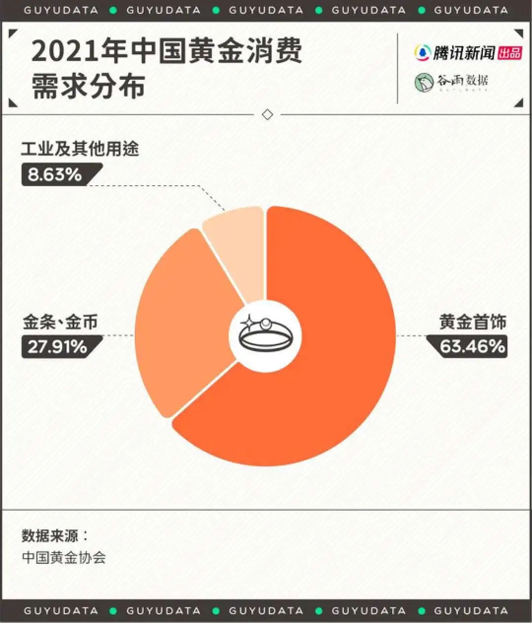 所以年轻人女性都在消费啥?金饰还是金条?瑾瑾说,虽然这几年有投资黄金的年轻人多了,但更多都是小打小闹,还比不上当年的中国大妈们。根据中国黄金协会数据,现在的年轻人喜欢买的还是首饰,有超6成的金饰购买需求,相比之下,更具投资性质的金条金币只有不到3成的年轻人关心。