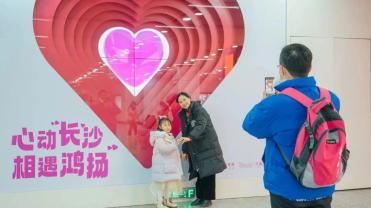 在情人节当天鸿扬家装联手天闻地铁传媒共同打造了“心动长沙,相遇鸿扬——情人节特别策划”,在长沙地铁五一广场明星站媒体——数字橱窗LED屏幕和数字品牌社区都装满了红色的爱心气球,为站点铺满浪漫色彩。而在橱窗中,爱心层层叠加,汇聚成一颗跳动的心脏,代表着人们遇到所爱之人的心动反应。