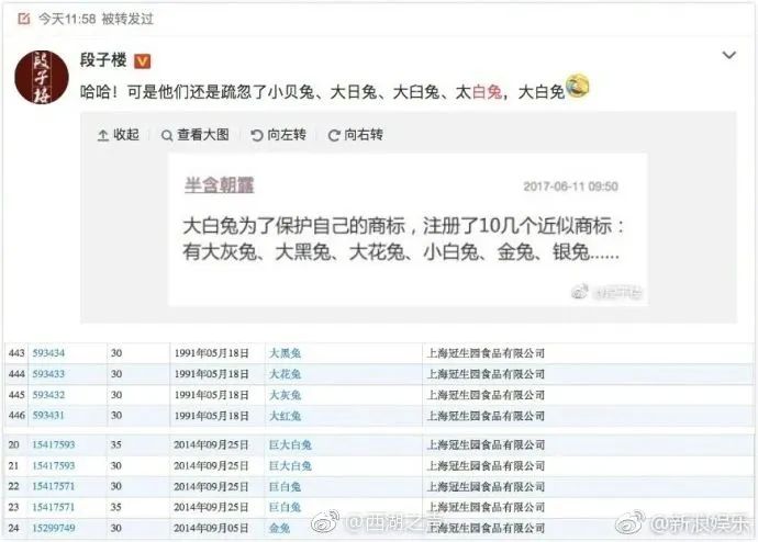 不过,品牌们的商标之战确实也是防不胜防,比方说大白兔,注册了一圈的兔子。