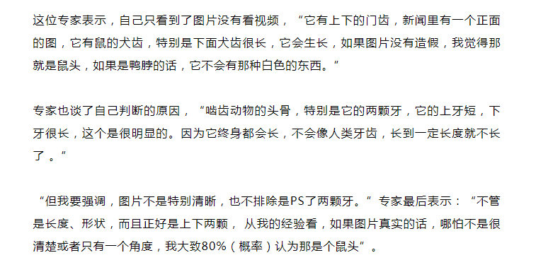 后来,校方、本地电视台、市场监督管理局纷纷下场,给的判断都是“老鼠头”其实是个“鸭脖”。(真没配图)