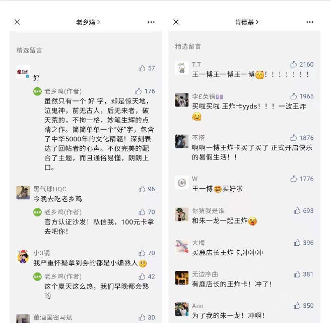 对比老乡鸡和肯德基的留言回复,会发现肯德基做得太一般了。老乡鸡能以区域品牌形成全国性的话题传播,和他对粉丝的用心经营是分不开的。