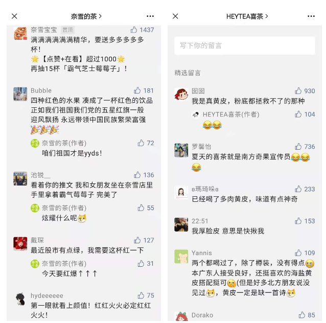 茶颜悦色有模仿者,粉丝就集体留言让茶颜去起诉;茶颜悦色一直聚焦长沙,粉丝就催着她走出本地;茶颜悦色有差评,粉丝就去集体声讨。