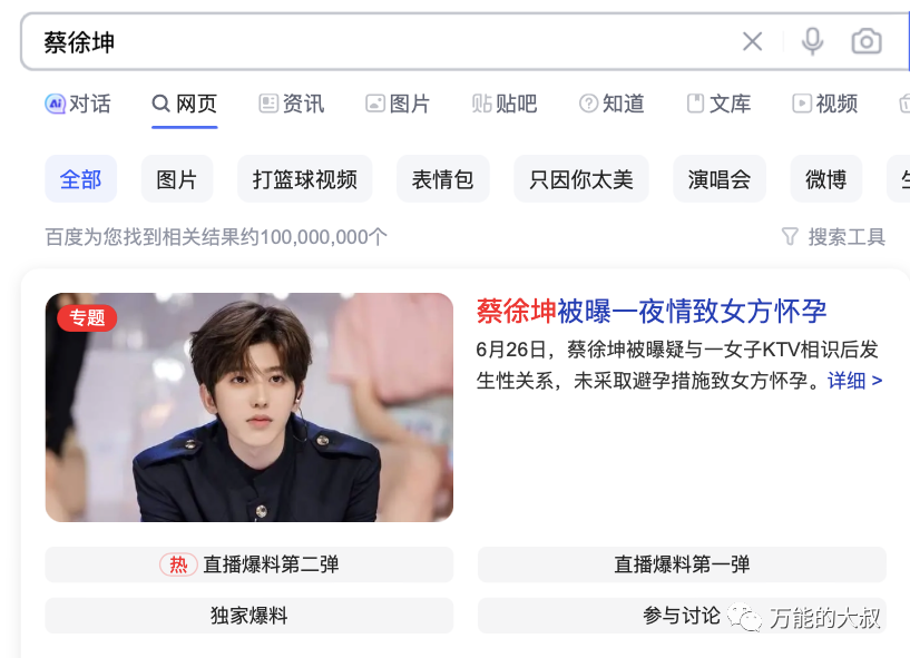 由此可见,百度为了承接这波“顶流流量”,用心良苦。至于百度和爆料帐号有什么关系,大叔不知道,但这个“吃相”,百度确实有些难看。
