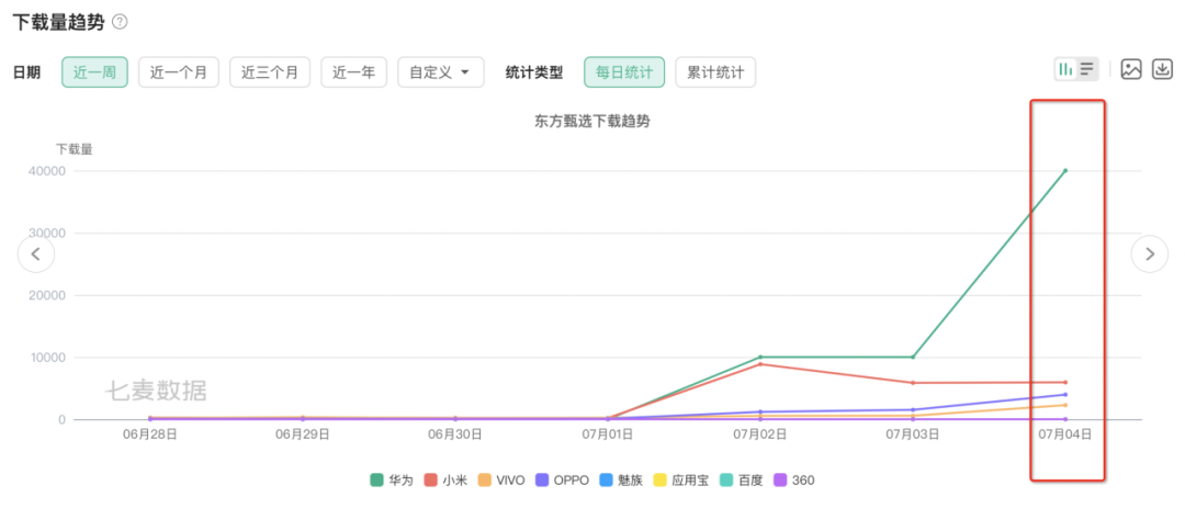 东方甄选APP近七天在安卓和IOS端的装机表现