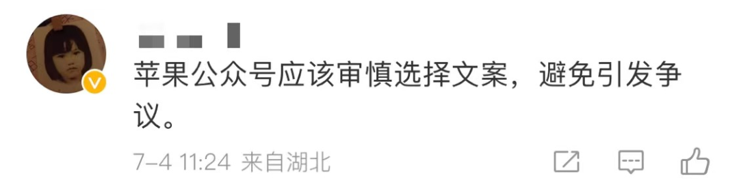 还有一方认为,苹果作为品牌方,在宣传内容上应该避免引发争议。