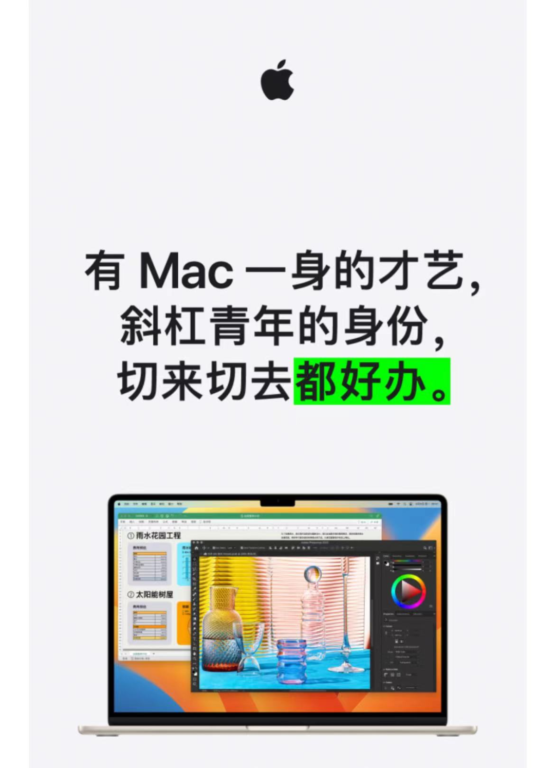 7月3日,苹果在公众号发布了一篇《用Mac的斜杠青年,杠上开了什么花》的文章。