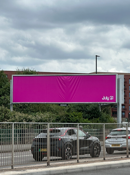 华纳在宣传《芭比》电影时,整块户外广告牌仅用了芭比粉这一纯色,右下角写着电影上映的日期。同时期铺天盖地的营销,这一代表色霸屏全世界,仿佛给整个世界都加上了粉红特效。