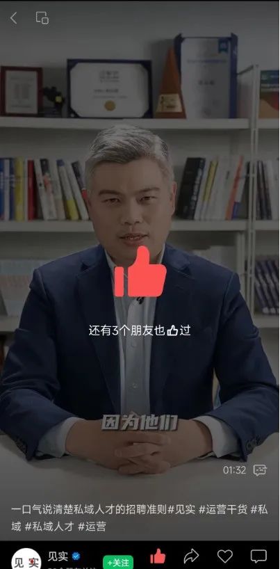 近日在见实社群里出现了一个新话题,有老铁发现自己的视频号上,视频的点赞界面发生了变化 。新变化一出,就引发了大家的热议,甚至有人称,这是“私域的第二春”。