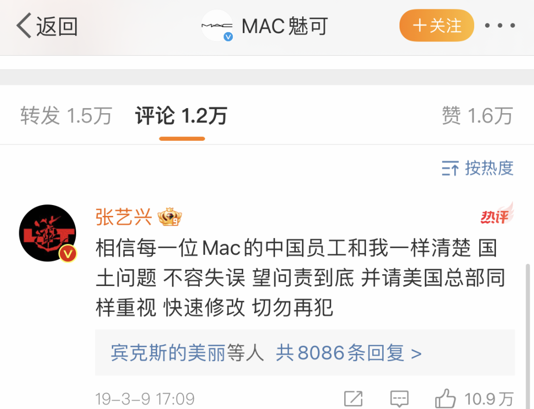 当时MAC中国地区代言人张艺兴随即发声