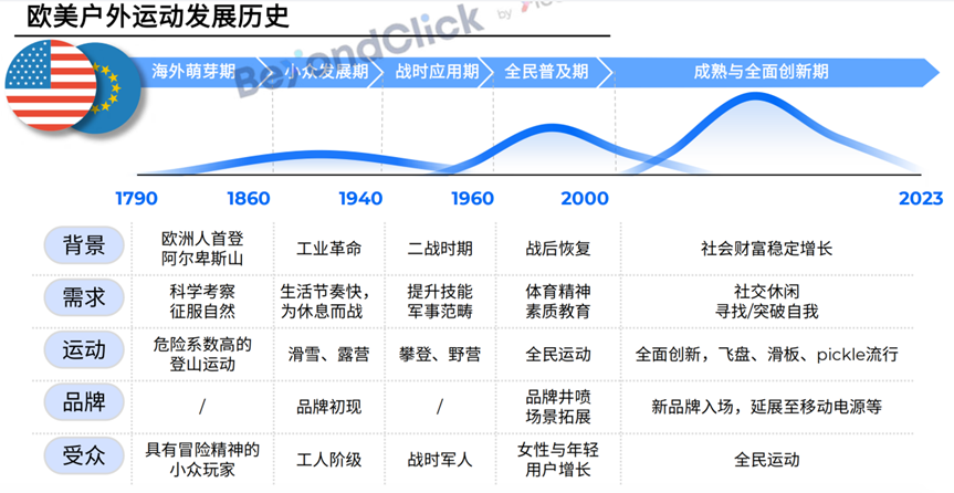 《美国户外运动的发展经验及启示》一文指出,户外运动始于18世纪末的欧美,此后经济发展、优渥的自然条件与政策支持,为户外行业提供了生长土壤。