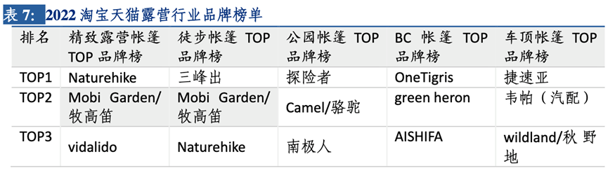 据《2022 淘宝天猫露营行业趋势白皮书》报告显示,按照2021 年各帐篷类型消费金额排序,牧高笛公司产品在精致露营帐篷、徒步帐篷品牌榜中均处于排名前列。这便是早早建立自有品牌护城河的市场回馈。