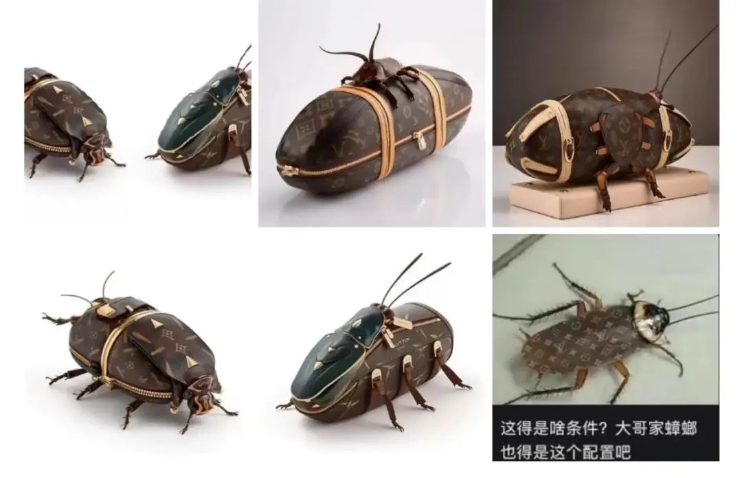 除了玩转超巨型视觉冲击,这次LV疑似用蟑螂造型推出的包包也是炸裂眼球,且不说受众是否会购买,但这种疯狂的行为势必会引起广东人的尖叫。LV以蟑螂栩栩如生的造型和品牌本身的棕色配色,让整个包包极具逼真感,也因为这种真实感冲击视觉让人怀疑包包是否真是品牌的作为,也可能是制造话题吸引眼球,也可能是真的新款。