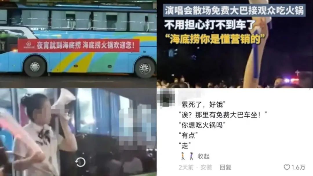 长沙张杰演唱会散场门口,观众被海底捞免费大巴拉客去吃火锅,此事件也成为了新闻引发网友热议。为了做生意,考虑到演唱会场地比较偏僻,海底捞提供免费大巴接送吃火锅,现场还安排了荧光棒、话筒进行吆喝,并设置粉丝限定狂欢区域。餐饮品牌服务是关键卖点,该品牌对顾客的深刻理解,懂得抓住机遇和理解消费者心智,为消费者提供沉浸式和便捷式的消费方式,这种营销模式也被网友称赞。